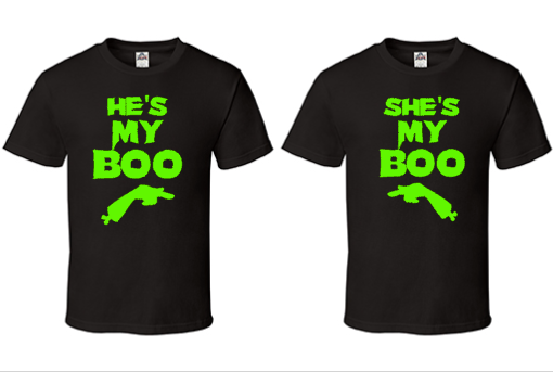Couples Halloween Shirts, Men's Women's, He's My Boo, She's My Boo, Zombie