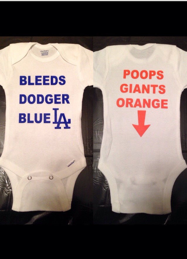 LA Dodgers Onesie, Bleeds Dodger Blue, Poops Giants Orange, Kids Baseball Shirt