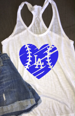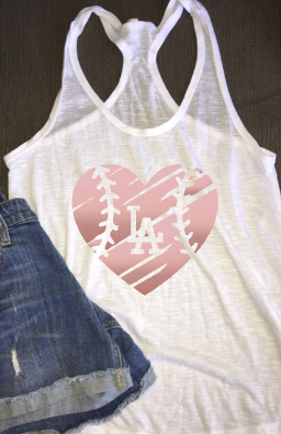 Women’s Cute White Racerback Tank Top with LA Dodgers Heart Baseball